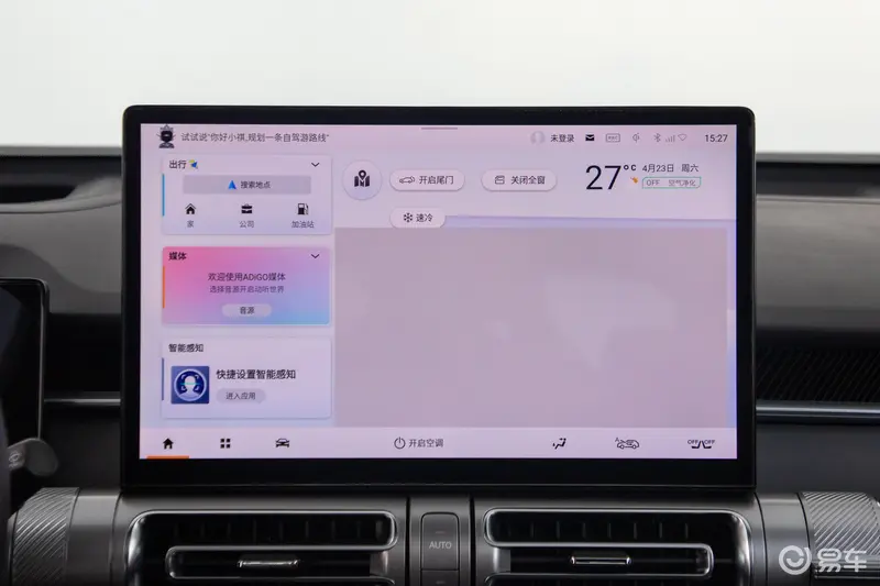 和传祺第二代GS8一样,影酷的大部分车辆功能都集成在了这块中控屏里,尺寸与第二代GS8一致,为14.6英寸,搭载了最新的ADiGO 5.0智驾互联系统,采用的是骁龙8155芯片,运行速度有保证。