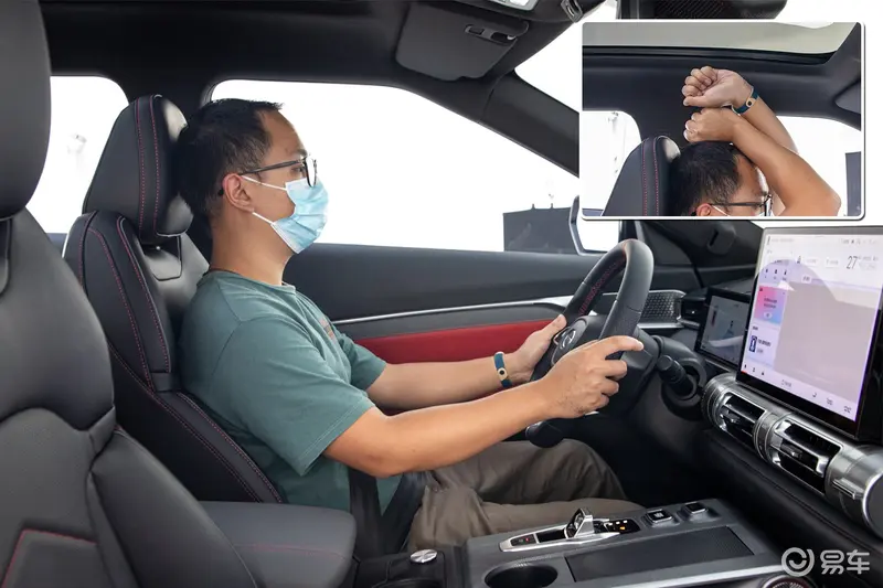 身高171cm的体验者坐进车内,前排头部空间为2拳。