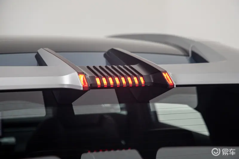为了将运动感拉满,车尾还配备了一个大尺寸的尾翼,中间采用了镂空的设计,而且高位刹车灯也被设计在了尾翼中间。