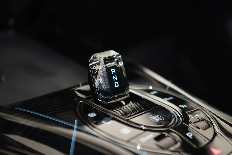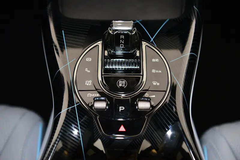 水晶挡把造型小巧,P挡按键设置在一键启动按键后方,电子挡杆的设计还是挺前卫的。