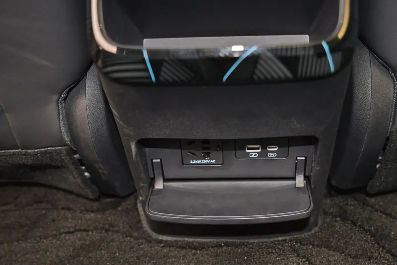 海豹为后排乘客设有220V 2.2kW的电源插座,并且还留有一个USB、一个type-C接口,为充电提供了很好的便捷性。