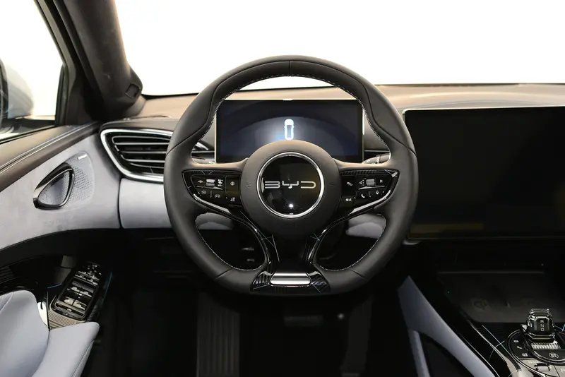 在内饰配置方面,海豹全系标配10.25英寸的全液晶仪表盘,全系搭载最新的DiLink智能网联系统,并采用15.6英寸的自适应旋转悬浮Pad,还支持5G网络。