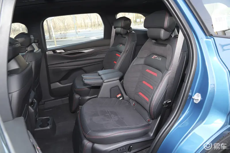 实拍的锐界L采用了2-2-3的7座布局,ST-Line车型的前两排座椅采用了翻毛皮+真皮混搭的面料,另外还设计有红色的专属点缀和“ST-Line”刺绣。前排座椅除了主、副驾电动调节功能外,还拥有座椅加热的配置,而副驾则还配备了老板键。我们还可以看到,锐界L前两排的座椅采用了双层头枕的设计,能更好地匹配不同身高的用户。