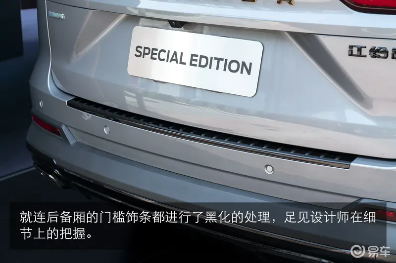 新领裕黑曜倾橙版尾部同样无法见到镀铬饰条的存在,就连后备厢的门槛处都进行了黑化处理,足以看出设计师对细节的把握。另外,尾门上的字母及中文标识也采用了亮黑色的形式,而新领裕的英文标识“Equator”还拥有橙色的描边。