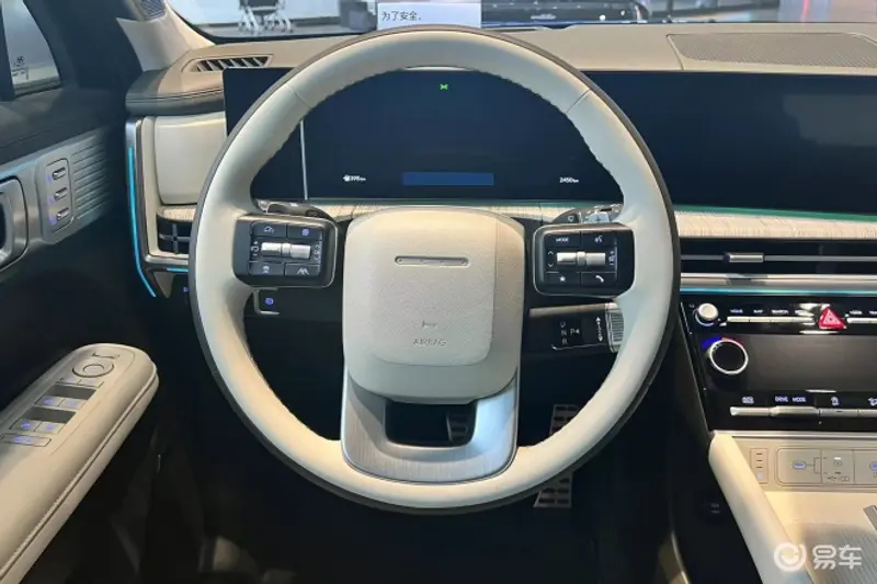 三辐式多功能方向盘使用了双色设计,内部按键也是用平直的线条设计,与整车设计十分搭配。方向盘上硕大实体多功能按键十分方便实用,并且方向盘的握感也不错。