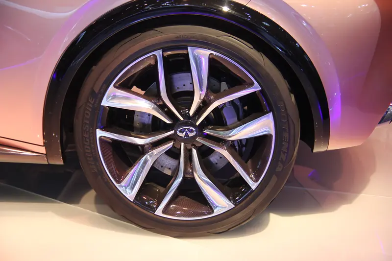 Q50 EauRouge概念车大量使用了灵感来源于F1赛车的碳纤维材质车身动力学组件,且还使用了21寸轮圈,使外观较普通版Q50更为霸气。