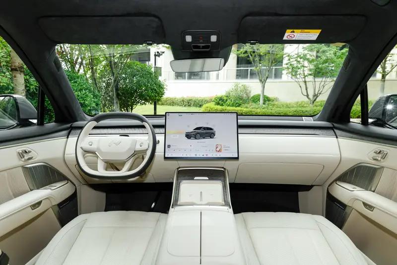 内饰方面,新车采用“全舱环抱式”座舱设计理念,营造出不错的科技感。具体来看,新车中控台设计较为简洁,配备了大尺寸悬浮中控屏以及手机无线充电,后排同样配备了液晶屏以及吸顶娱乐屏,带来更舒适的乘坐氛围。乐道L90从前舱优雅延伸至第三排,每一处细节,皆蕴藏匠心雕琢。乐道L90对每一排的材质选择都不妥协,全部采用典雅的真木材质,同时通过高级材质的点缀,错落有致,于细微处打造精致的豪华。