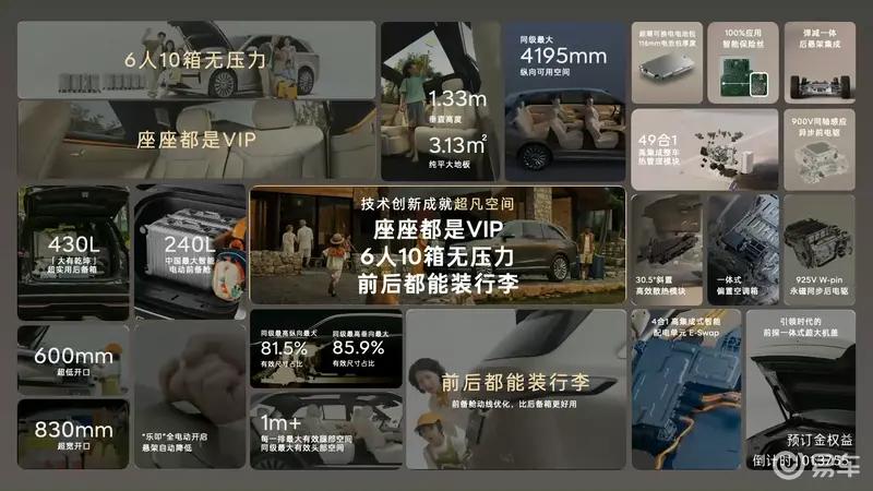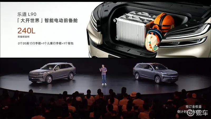 此外,新车还拥有一个超大的前备箱,有着240L的容量,可装载2个20英寸行李箱+1个儿童行李箱/1个20英寸行李箱+1个26英寸行李箱/1个30英寸行李箱。同时,前备舱采用全电动操作,拥有智能乐叩开启功能,在指定范围内连续敲击两次前盖即可开启,另外还支持手机App/实体按键/实体蓝牙钥匙/车内语音/车内大屏控制等多种方式进行控制。