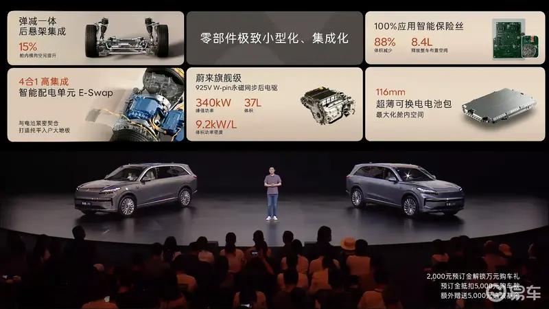 动力方面,新车拥有全域900V三电技术,并会推出后驱以及四驱版车型,后驱版车型电机最大功率340kW,轮边扭矩5000N·m,零百5.9秒;四驱版车型前、后电机最大功率分别为100/340kW,零百4.7秒。动力电池方面,新车搭载85kWh的全新一代轻量化电池包,电池包高度116mm,系统能量密度193.2wh/kg,CLTC综合工况续航可达到605km。