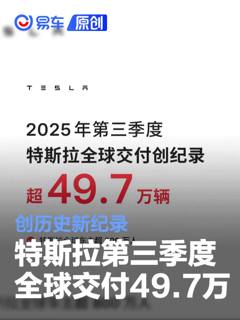 易车讯 日前,特斯拉发布2025年第三季度全球生产与交付报告,电动车和储能业务双双创出新高。第三季度特斯拉全球共生产纯电动车约44.7万辆,交付量达49.7万辆。同期,特斯拉储能产品装机量达到12.5吉瓦时,上海储能超级工厂产能释放持续助推业务增长。上海超级工厂9月交付量超过9万辆,中国市场销量超7.1万辆,环比增长25%。