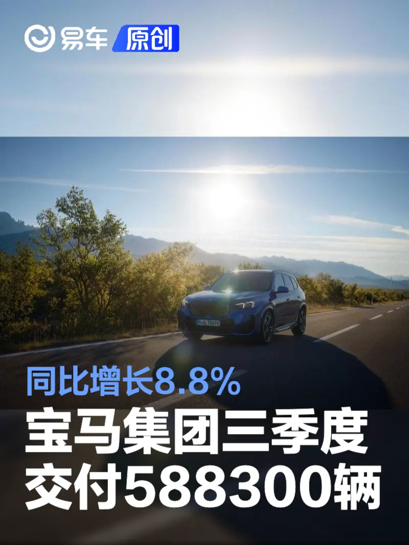 易车讯 日前,宝马集团公布最新交付数据。2025第三季度宝马集团继续保持增长态势,交付量同比上升8.8%,达588,300辆。2025前三季度宝马集团累计交付总量为1,795,894辆,同比增长2.4%。