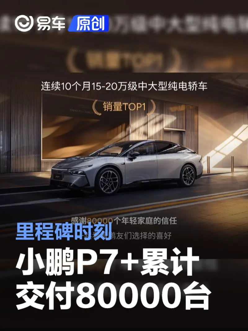 易车讯 10月14日,小鹏汽车官方宣布小鹏P7+累计交付突破80000台,新车连续10个月在15-20万级中大型纯电轿车销量TOP 1。作为小鹏汽车的第三款纯电轿车,小鹏P7+有大量创新设计元素。