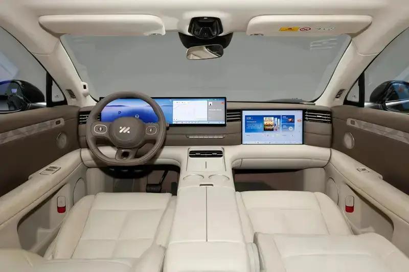 内饰方面,新一代智己LS6搭载全新全场景数字座舱,配备旗舰级MinLED显示技术,同时还有5K驾舱屏和3K副驾娱乐屏。此外,新车提供全幅方向盘和YAT半幅方向盘可选。同时,新车还拥有全新悬浮式音响。并配备了车载冰箱、氛围灯、二排座椅加热等功能。