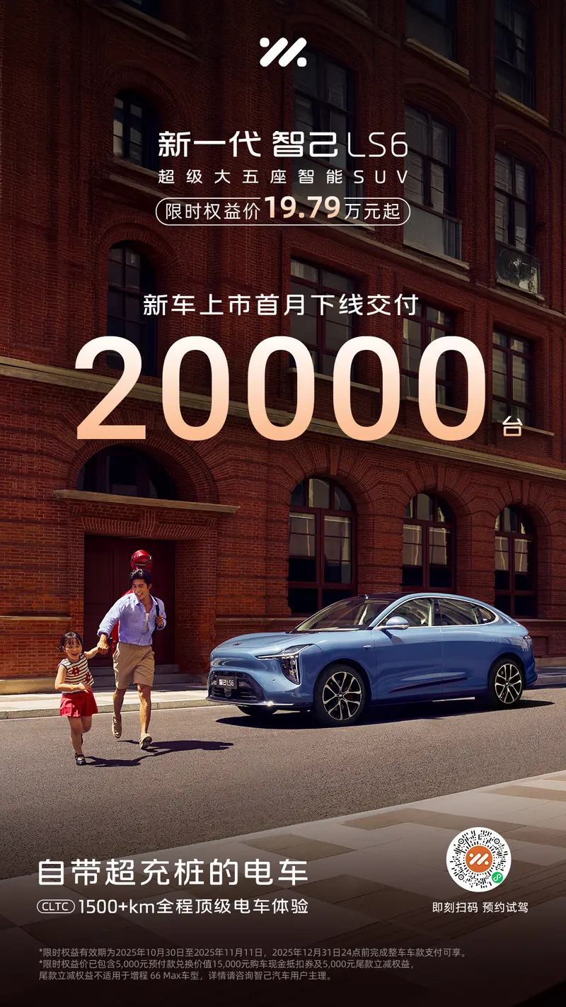 易车讯 10月30日,智己官方宣布新一代智己LS6上市首月下线交付20000台。据悉,新车提供纯电和增程两种动力可选。