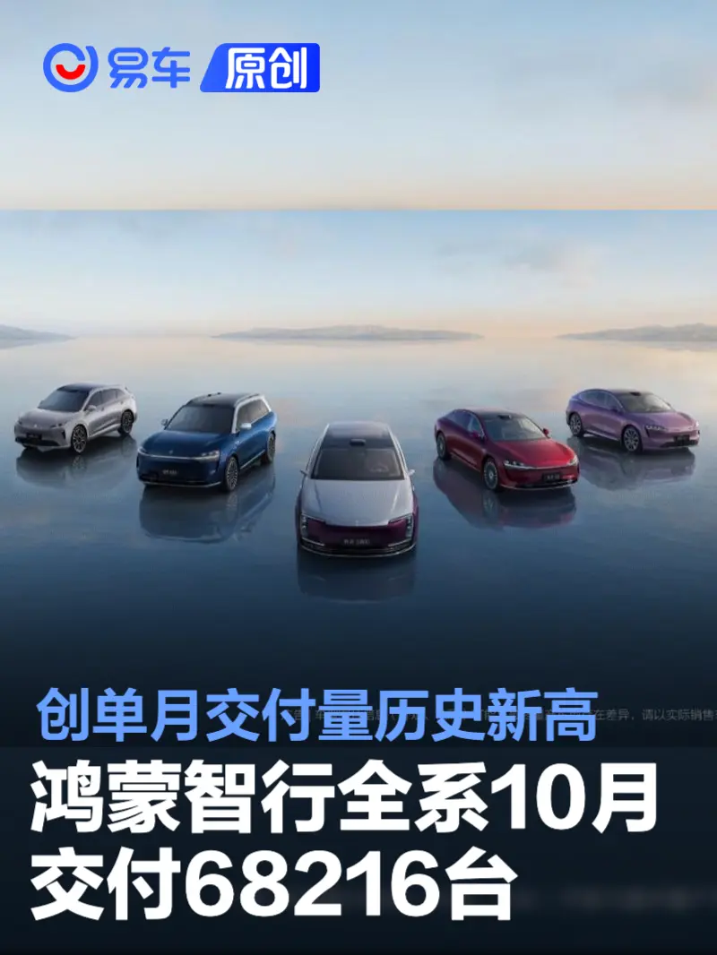 易车讯 鸿蒙智行日前公布了最新销量数据,10月全系交付68216台,创单月交付量历史新高。10月28日,鸿蒙智行全系交付突破100万台,从零到百万仅用了43个月。