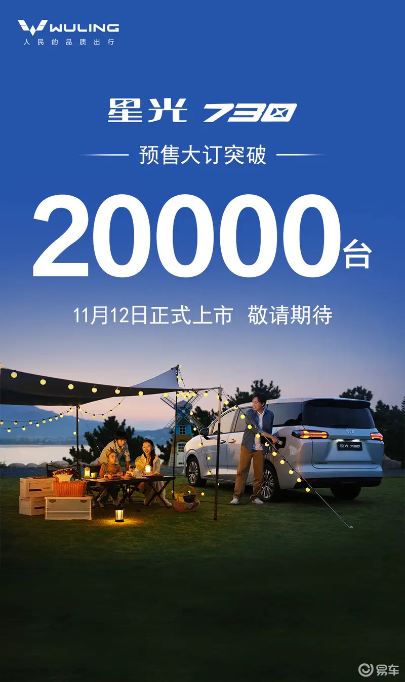 易车讯 我们从五菱汽车官方获悉,五菱星光730预售大订突破2万台。五菱星光730于10月15日开启预售,预售价区间7.68-11.28万元,限时置换补贴价区间7.38-10.78万元,将于11月12日正式上市。