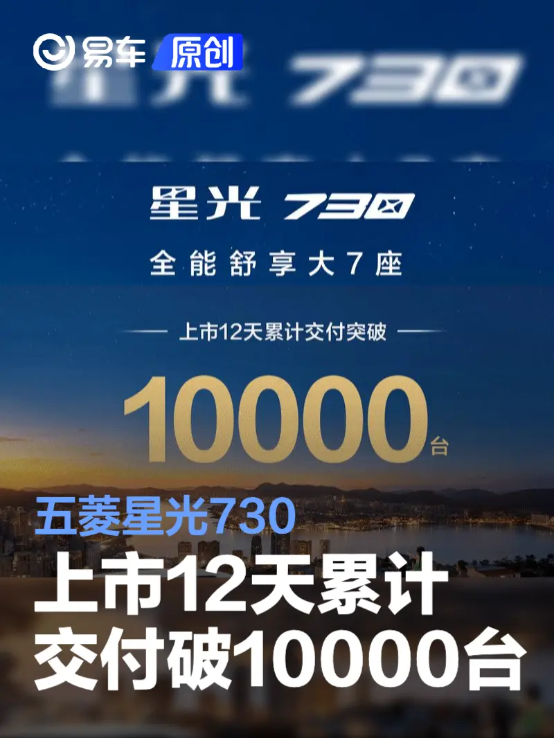 易车讯 日前,五菱官方官方宣布星光730上市12天累计交付破10000台。新车于11月12日正式上市,共推出4款车型,官方指导价7.30-10.98万元,置换补贴价7.10-10.58万元。