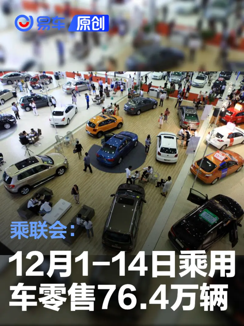 12月1-14日,全国乘用车市场零售76.4万辆,同比去年12月同期下降24%,较上月同期增长2%;今年以来累计零售2,224.7万辆,同比增长5%。