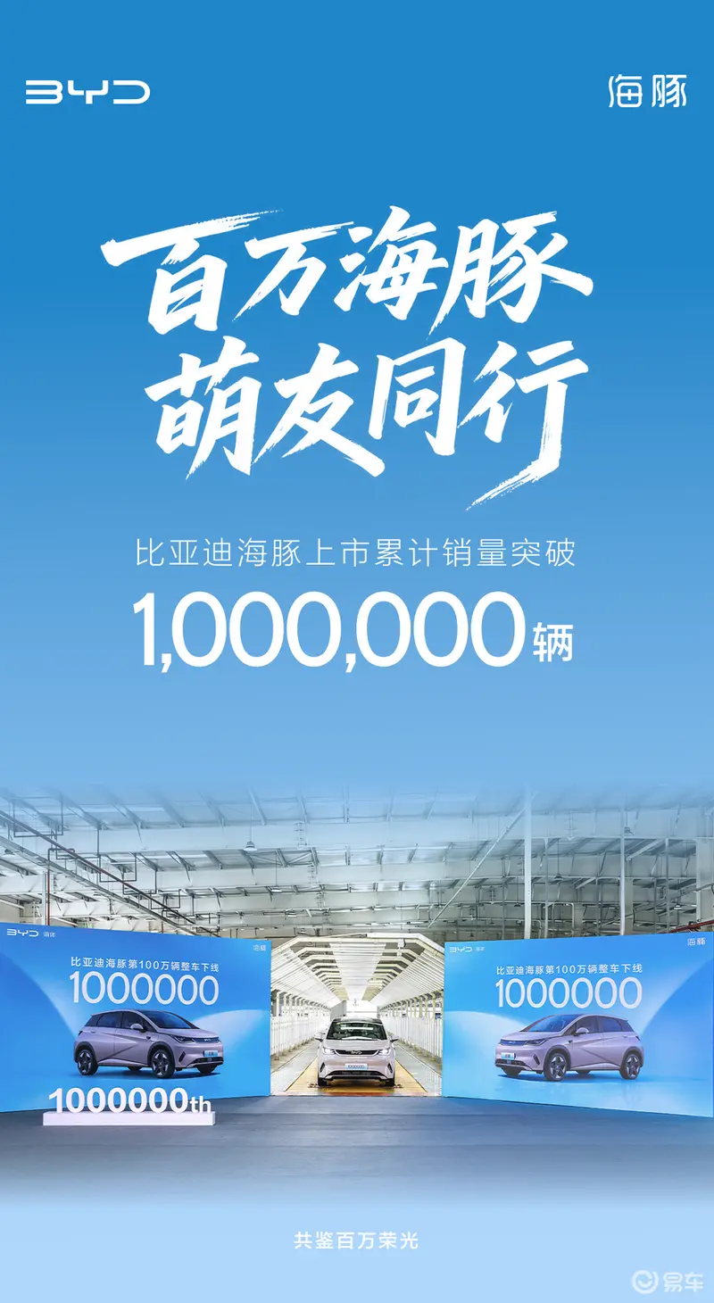 易车讯 12月18日,比亚迪宣布海豚第100万辆整车下线,成为中国最快达成百万销量的A0级轿车。12月2日,比亚迪汽车海洋网销售事业部总经理张卓在社交媒体上宣布,比亚迪海豚上市累计销量突破100万辆。