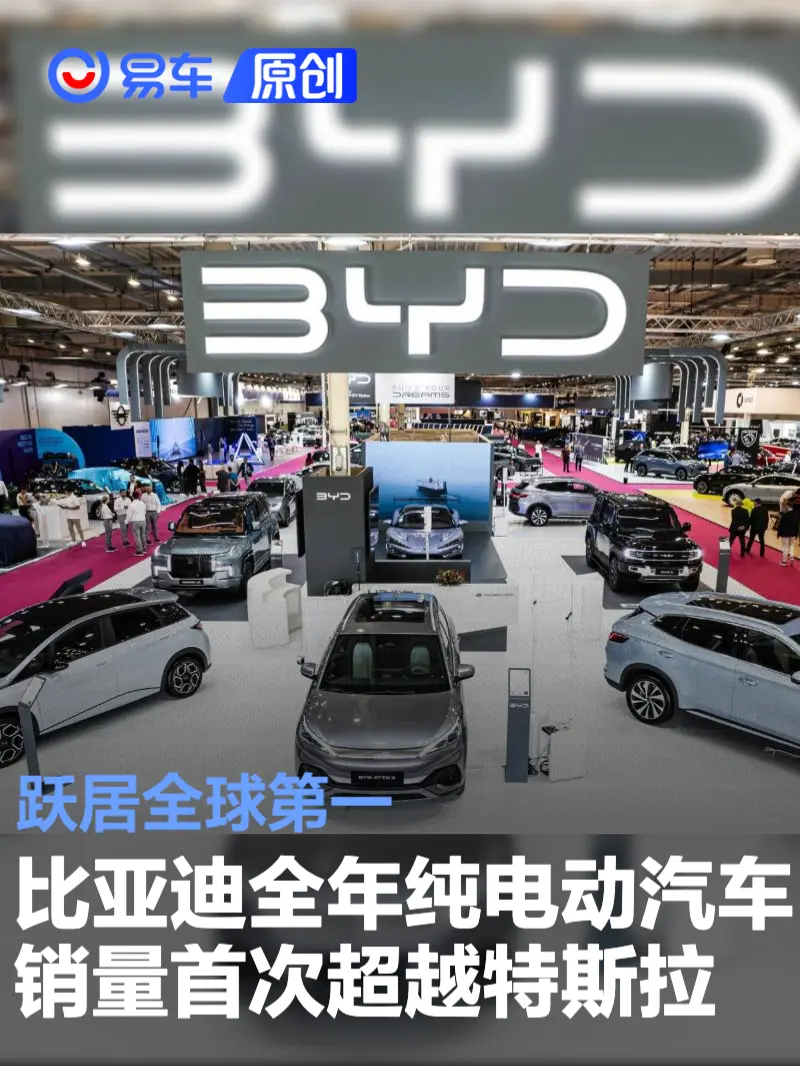 易车讯 据国内媒体报道,比亚迪首次在全年纯电动汽车销量上超越特斯拉,跃居全球第一。数据显示,比亚迪2025年销量为4602436辆,其中纯电车型销量约为226万辆。特斯拉公布的数据显示,2025年累计交付163.61万辆,这是比亚迪在全年纯电动汽车销量上首次超越特斯拉。