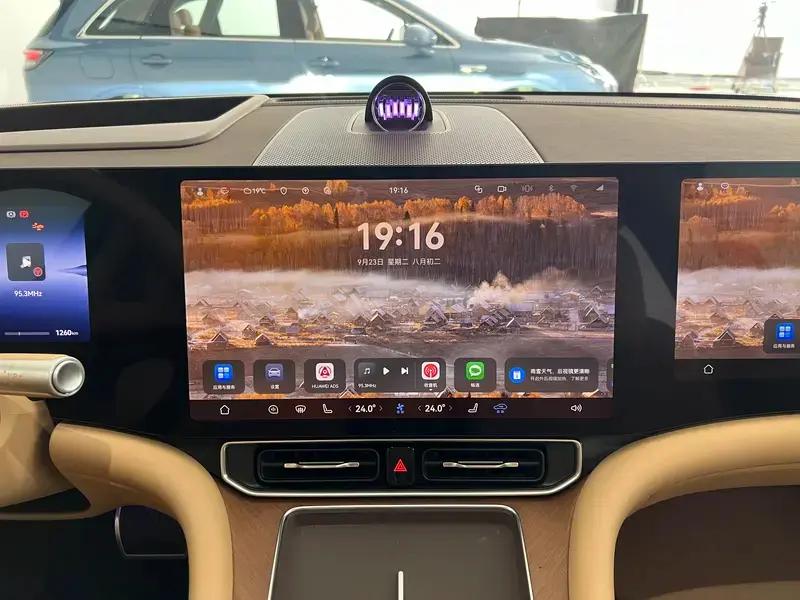在座舱配置方面,问界M9采用三联屏设计,包含12.3英寸的液晶仪表盘、15.6英寸智能中控大屏和16英寸副驾娱乐屏。同时前两排座椅后方能够通过磁吸支架对后排的设备进行拓展,并且基于鸿蒙座舱还能够实现多屏联动交互。此外,新车提供了双零重力座椅,座椅靠背最大角度达150度。