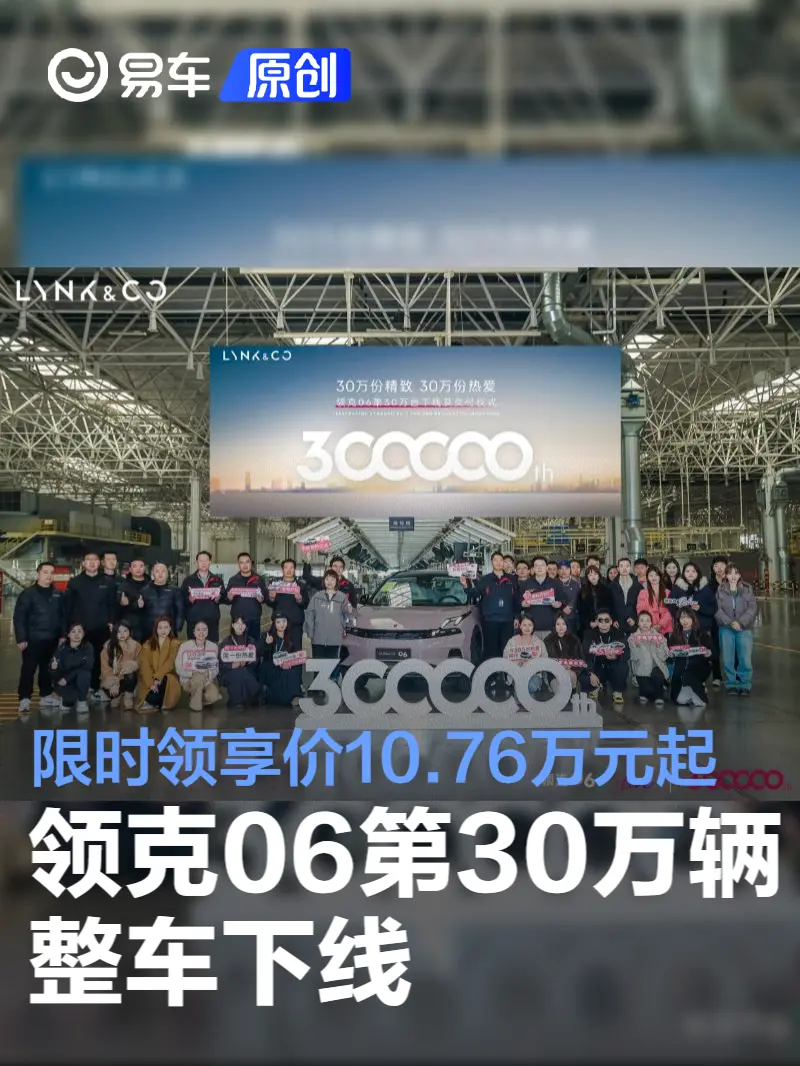 易车讯 1月16日,在领克成都智能互联汽车工厂,领克06第30万辆整车正式下线,这是领克06自2020年上市以来又一重要的里程碑时刻。
