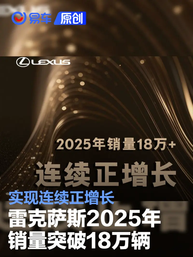 易车讯 1月20日,雷克萨斯中国公布了2025年销量数据,销量突破18万辆,实现连续正增长。感谢累计220万+中国用户的长期信赖,致敬110万+ES车主的持续厚爱。