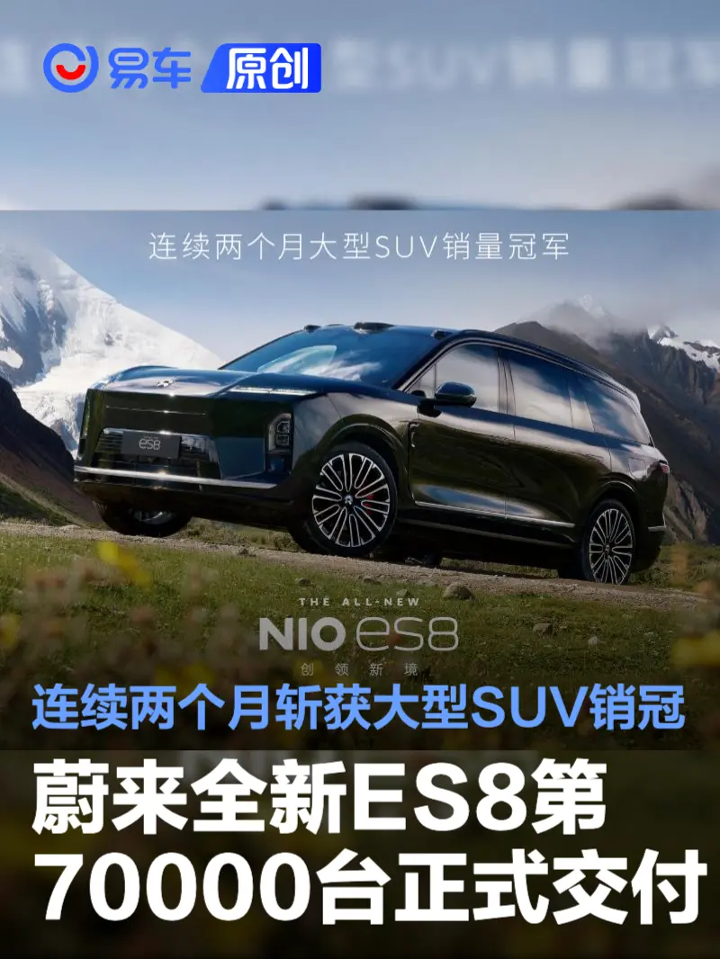 易车讯 2月27日,蔚来全新ES8在温州完成第70000台交付。2026年1月,全新ES8零售销量17645台,连续两个月斩获大型SUV销量冠军及40万元以上车型销量冠军。