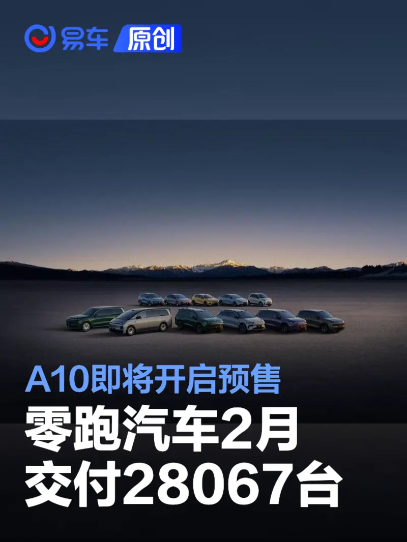易车讯 3月1日,零跑汽车公布最新交付数据:2026年2月,零跑全系交付达28067台。同时,官方表示零跑A10即将开启预售。