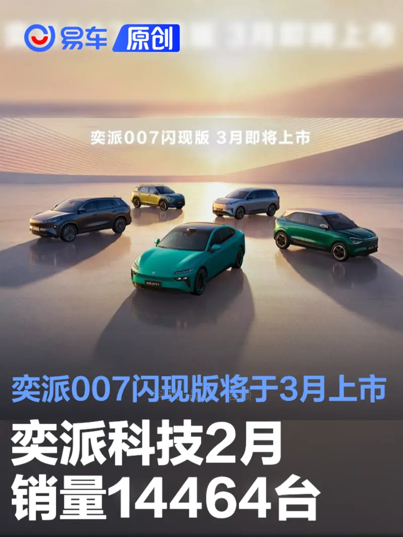 易车讯 3月1日,奕派科技公布最新销量数据。奕派科技2月销量达14464台,1-2 月累计销量36205台,同比增长37%。新车方面,奕派007闪现版将在3月上市,其余多款新品也将陆续登场。