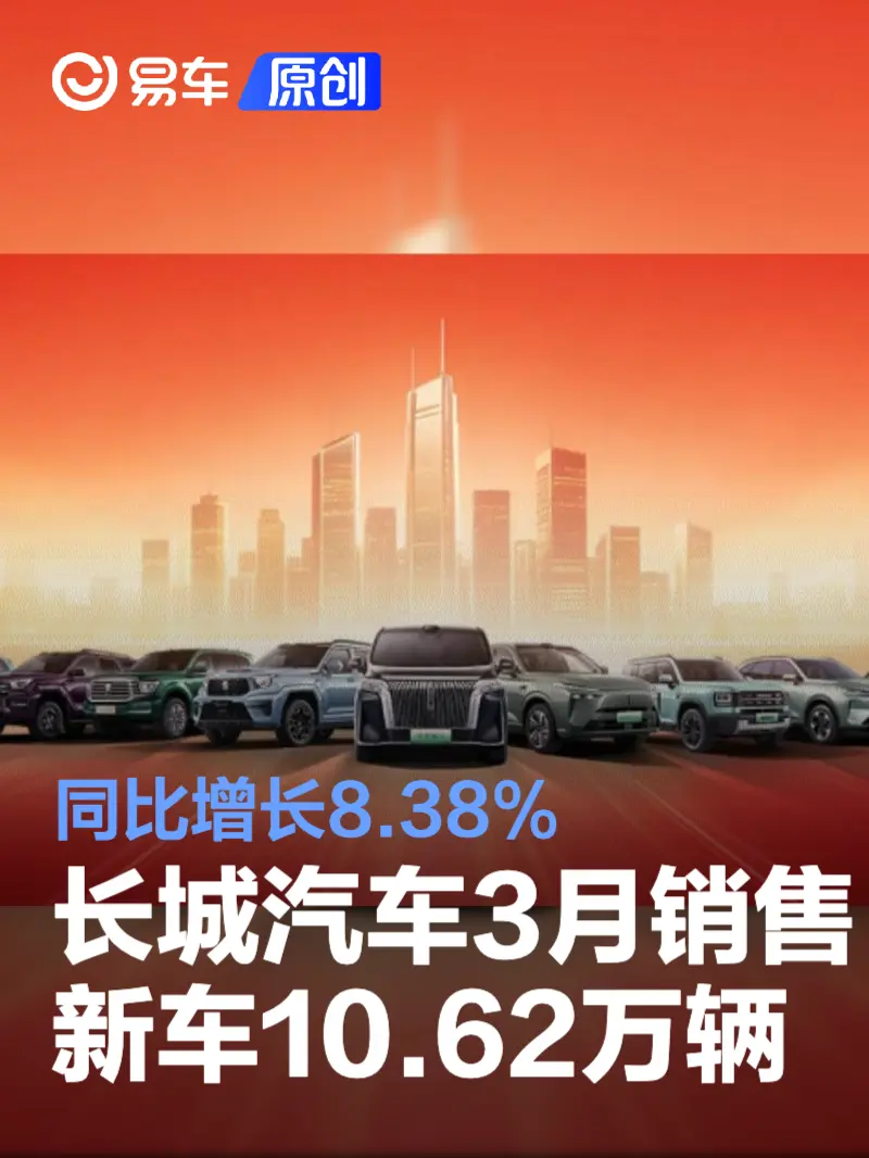 长城汽车3月销售新车10.62万辆 同比增长8.38% 2026-04-01 20:51 来源:汽车产经网 作者:易车原创报道 举报 易车讯 4月1日,长城汽车公布最新销量数据。2026年3月,长城汽车销售新车106198辆,同比增长8.38%。1-3月累计销售新车269104辆,同比增长4.79%。 具体来看,哈弗品牌3月销售新车57021辆,同比增长8.13%;魏牌3月销售7751辆,同比增长65.8%;坦克品牌3月销售18316辆,同比增长5.38%;欧拉品牌3月销售2529辆,历史累计销量达56.36万辆。长城皮卡3月销售20450辆,同比稳步增长。