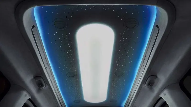 这样一来,新车的天花板增加了205毫米,并在后排增加了星空车顶以及氛围灯的设计。同时增大的空间使得新车内部可以容纳一个25英寸的巨大屏幕。