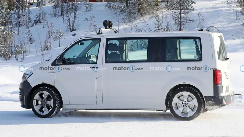 外观设计方面,大众ID.BUZZ长轴版虽然采用了大众T6的车身进行伪装,但是不妨碍看出是长轴距版车型的测试车。值得一提的是,可以看到新车的左侧没有装备侧滑门,因此推测可能是货车版产品的测试车。