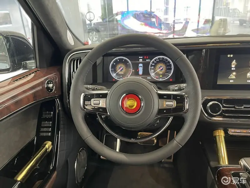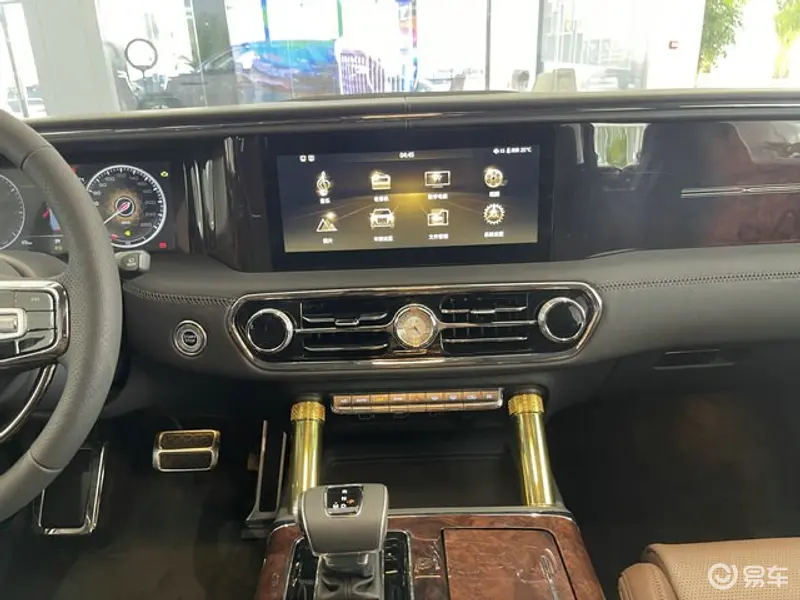 来到内饰部分,红旗LS7车内采用了大量木纹饰版及真皮材质进行包裹,同时加入金色装饰进行点缀,特别车内两侧扶手上方印刻的红旗中文标识更带给人浓浓的厚重感。