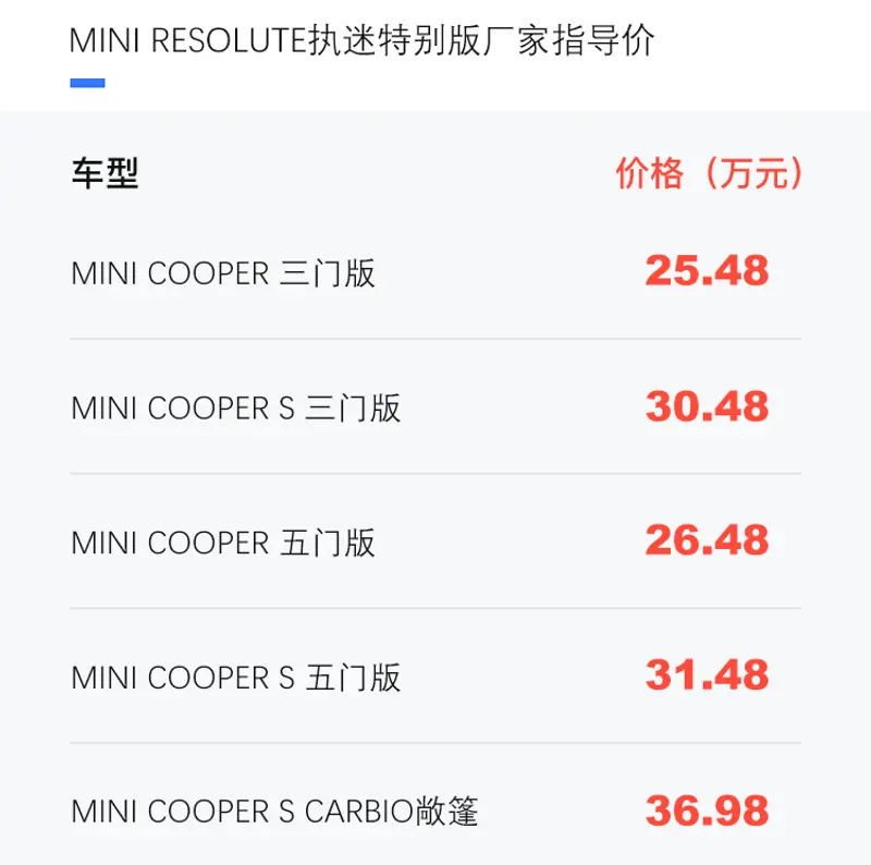 易车讯 MINI全家族特别版车型即日起正式登陆中国市场,建议零售价25.48万元起。MINI全系五款核心车型同步推出特别版车型,包括MINI RESOLUTE执迷特别版,MINI CLUBMAN UNTOLD自在特别版,以及MINI COUNTRYMAN UNTAMED不羁特别版,在展现MINI强大产品阵容的同时通过特别版车型表达MINI所承载的个性化态度。