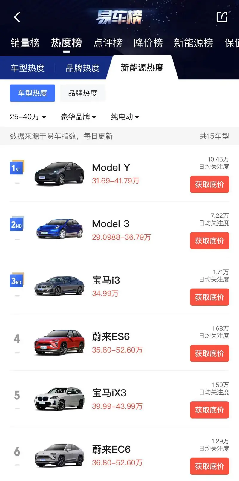 根据易车App“热度榜”数据,宝马i3的日均关注度为1.71万,在同级别竞品中排名第3位,如需更多数据,请到易车App查看。
