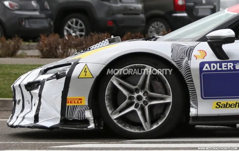 测试车只有轻微的伪装,其仍处于开发的早期阶段。不过新车也有一些修改,比如在前仓盖上的临时盖板可能隐藏了一个新的风道。此外,前保险杠也进行了修改,可以看到更加夸张的空气动力学套件设计。
