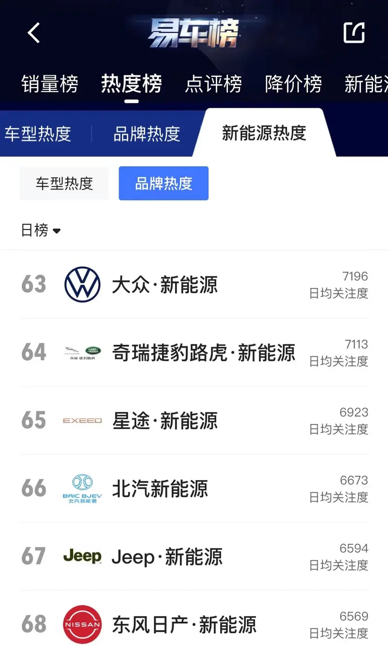 作为参考,此前大众汽车收购重型卡车制造商Navistar后,获得了Scout商标的使用权。根据易车App“热度榜”数据,大众新能源在新能源品牌同级别竞品中排名第63,日均关注度7196。如需更多数据,请到易车App查看。