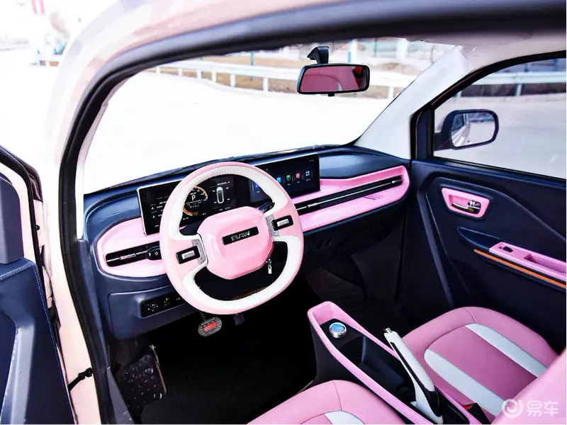 内饰方面,新车将萌趣、时尚进一步延伸,整个内饰粉红双拼配色,双幅双色多功能方向盘,打造沉浸式氛围空间;T型按键的设计及优质材质的选用,进一步凸显精致感;而同级独有的双10.25英寸智能大屏的配备,更将科技时尚的氛围感拉满。坐入车内,整个人被软质座椅包裹,舒适驾乘体验进一步提升。