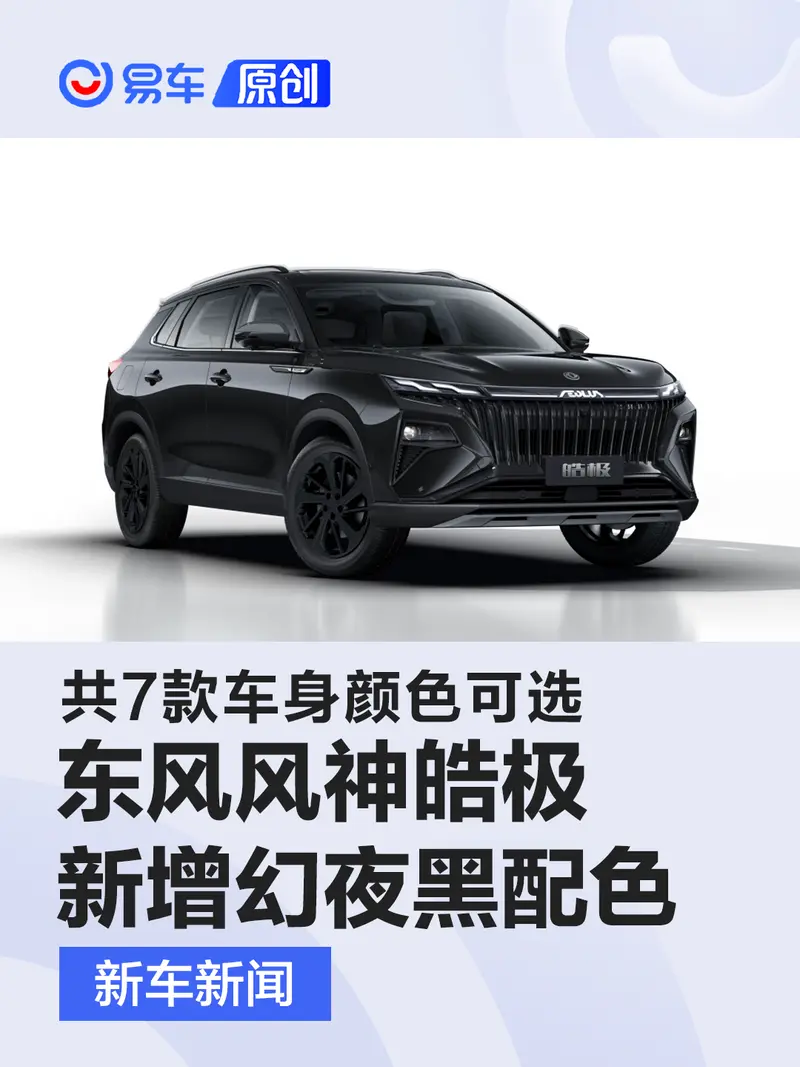 易车讯 日前,东风风神皓极新增幻夜黑全新配色。作为参考,在售车型基础配色包括极光绿、陶瓷白、端砚黑、绅墨蓝、星河灰、雪夜银蓝。