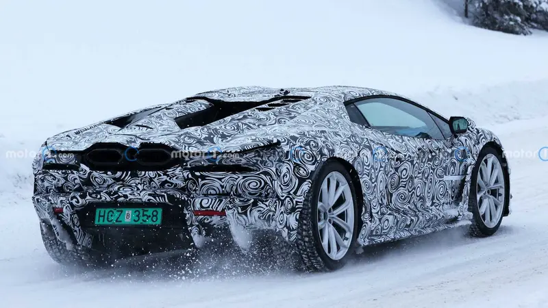 结合谍照与此前曝光的专利图来看,新车的车身布局仍旧传承了惯用的楔形车身设计,这是兰博基尼车身造型的传统之一,这也是非常利于中置四驱机械布局的车身样式,可以更好的兼顾前后车轴之间的重量平衡。