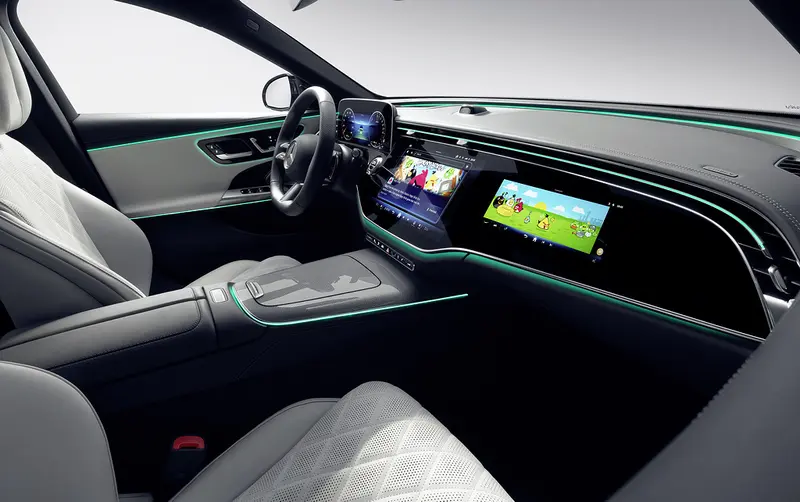 全新奔驰E级使用了最新的MBUX Entertainment Plus系统,在传统中控台区域展现出来的就是超大三联屏。其造型和样式与在售奔驰EQS、EQE等极为相似,还使用了最新样式的方向盘。
