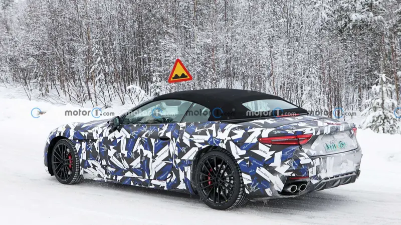 行李厢盖尺寸略有调整,前部或留给敞篷机构。测试车尾灯造型与硬顶版车型几乎一致,排气为双边四出。