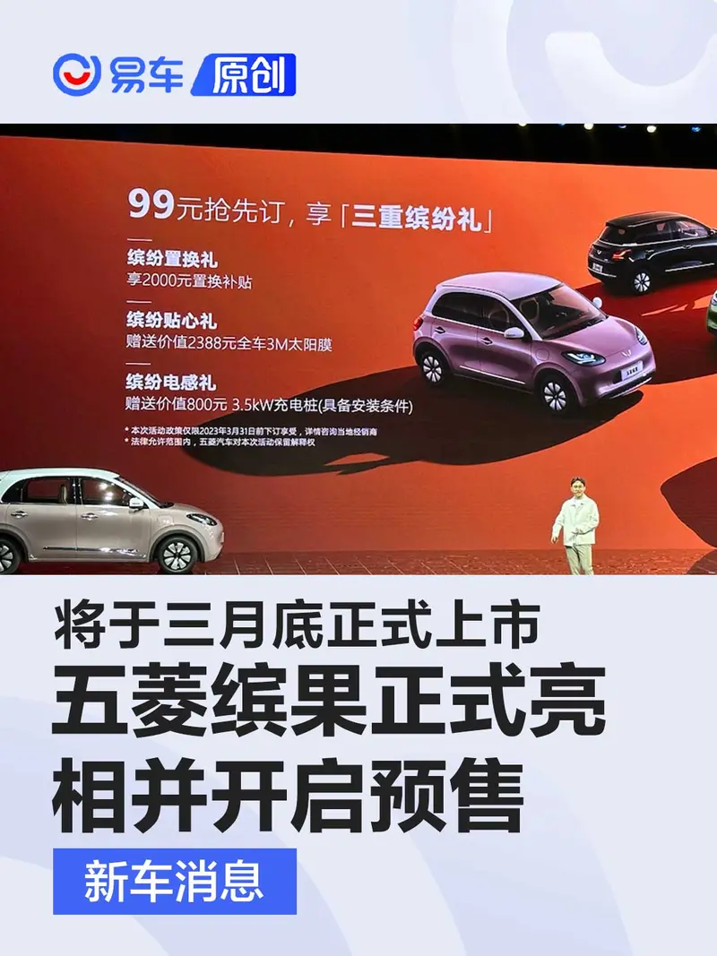 易车讯 3月2日,五菱缤果正式在上海亮相并同步开启预售,同时官方还公布了预售政策,目前首批车已经下线,将于3月底正式上市。缤果作为五菱汽车打造的全新五门纯电小型车,采用了浓郁的复古风格设计,并提供203km和333km两种续航版本可选,相比最高只有170km续航的宏光MINIEV也要高出不少。