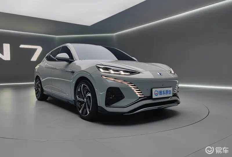 造型方面,腾势N7采用家族化π-Motion势能美学设计语言,融入大量INCEPTION概念车展示的设计理念,前脸采用封闭式设计,LED日行灯具有极强的辨识度,非常独特。同时激光雷达位于雾灯盖板处,并运用黑水晶材质,把激光雷达和前脸融合起来,让前脸造型看上去更为协调。