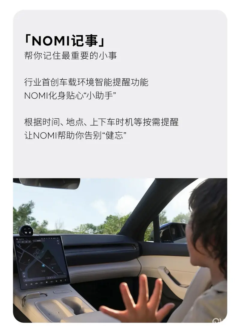 NOMI增加记事功能、BEV模型也正式量产上车,能够360度显示信号灯和更多路面标识信息。同时,还可以通过NIO App可以实现一键遥控泊车。