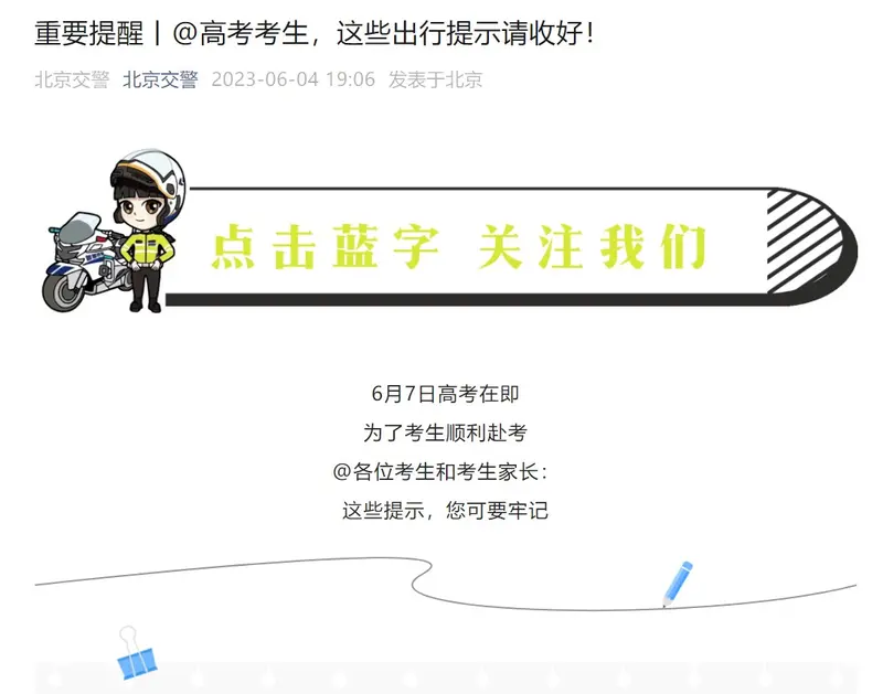 易车讯 “北京交警”公众号近日透露,2023年普通高等学校在京招生统一考试将于6月7日至10日(周三至周六)进行,总计6.5万名学生参加考试。北京市共设置考点99处,分别在18个考区。而针对网友咨询尾号限行能都接送考生的问题,“北京交警”公众号也进行了回复。