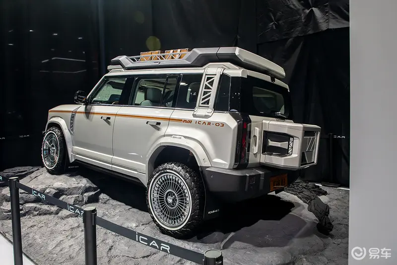 同时这次iCAR品牌还带了iCAR 03 登陆火星改装车,针对前脸、轮圈、后包围、车顶和后备厢小书包都做了改装,视觉效果更加狂野。