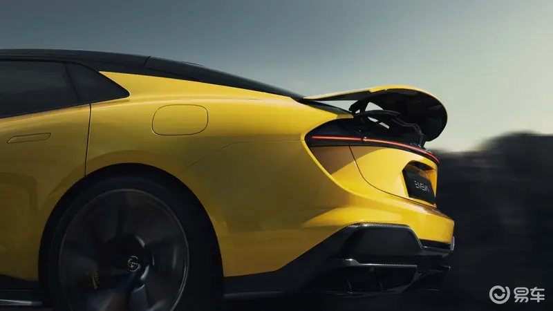 侧面来看,新车车身线条非常修长,整体造型采用了非常动感的溜背式轿跑车设计风格。此外,新车配备了造型动感的多辐轮圈以及多活塞制动卡钳。尾部方面,新车整体造型同样动感,贯穿式尾灯为时下主流设计方向,同时新车还搭载了可升降的尾翼。贯穿的后包围与动感的前包围行成了很好的呼应。官方表示,新车后扰流板宽度达到296mm,升起后可以提供215公斤的下压力。