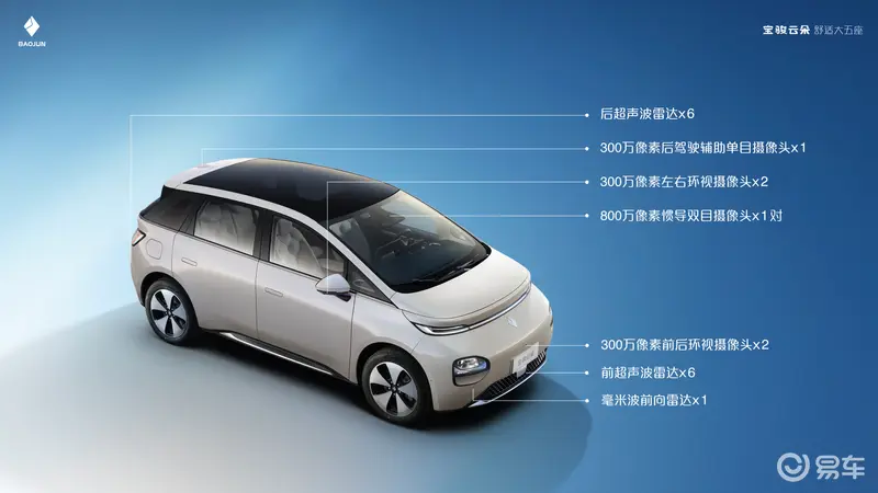 硬件方面,宝骏云朵灵犀版首发搭载800万像素惯导双目摄像头,配合4枚环视摄像头、1枚后单目摄像头。新车选择“全域无图”模式,抛弃高精地图带来的高开发成本。
